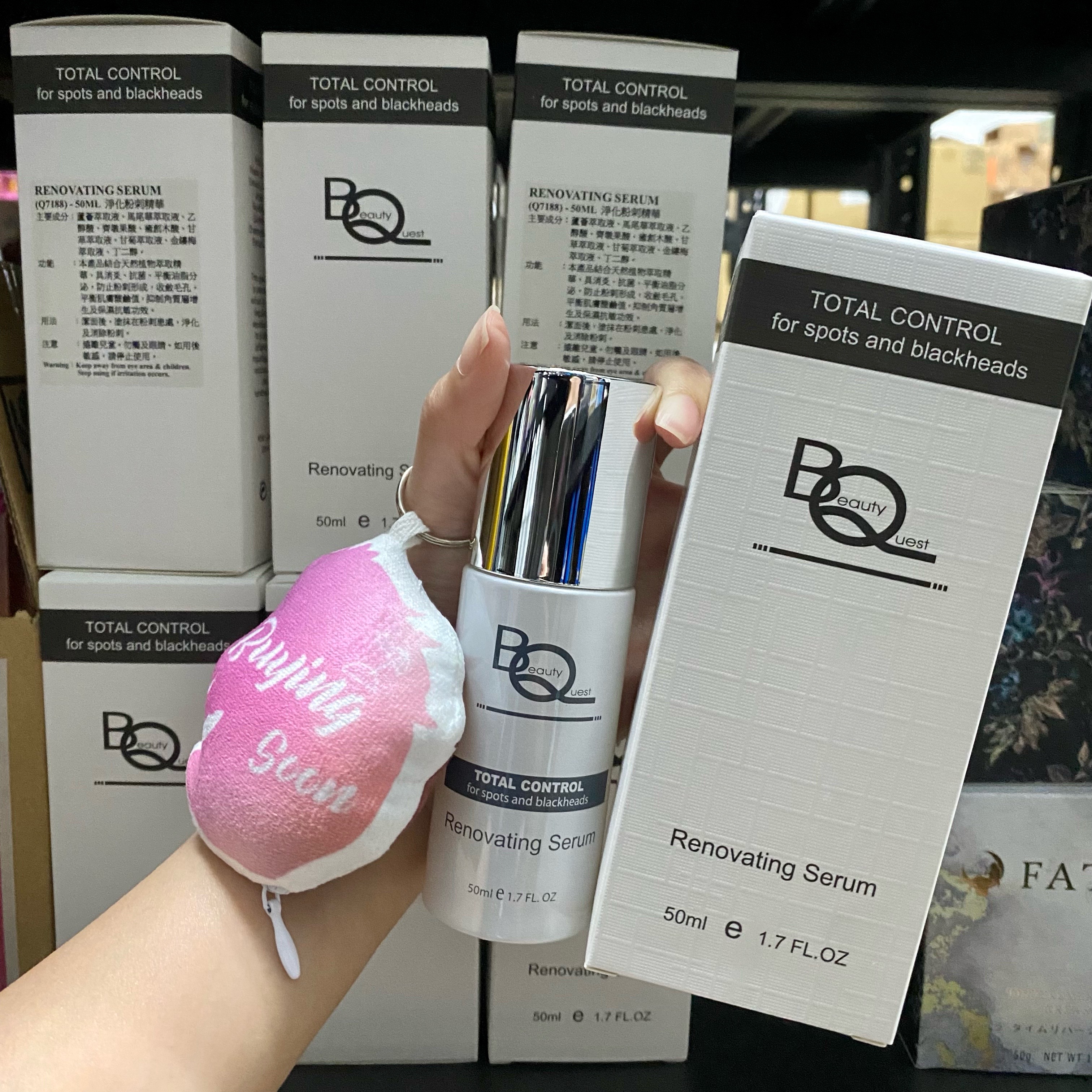 法國專業護膚品牌Beauty Quest的renovating serum 結合了多種草本配方及特效治療精華,例如:蘆薈、尾草、甘草及洋甘菊精華等,能有效消炎抗菌,平衡油脂分泌,從而減少粉刺增生,達到收細孔。 它採用的棓酸和竹石素比傳統的果酸更加溫和,但功效更好一有 收斂、抑制角質層增生、鎮靜消炎、抗氧化及美白的功效。 成份天然。任 何膚質都合用,特別適合有肌膚問題煩惱的人,不分男 女。(此產品不用動物做測試,不含香料、色素、酒精)只要連續使用7天,你會發覺暗瘡、黑頭、粉刺酒米必有明顯的改善 使用方法: 早晚使用,在爽膚水前塗於有問題的肌膚上,等到完全精華吸收後才繼續日常的護膚程序。